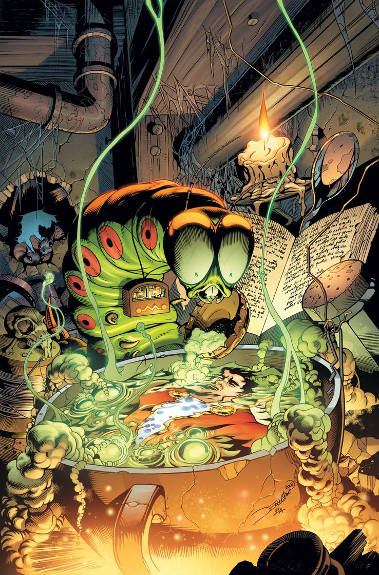 En cuanto a Shazam, parece que el "gran" villano será esta vez Mister Mind tal y como se ve en la portada.